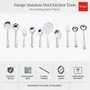 PAKAGE INCLUDE-: We are offering 10 steel kitchen accessories items- 2 Ladles(Karachhi) for cooking 1 turner(Palta) 2 jhara(Skimmer) for frying 1 corn server 1 rice spoon 1 Oval Spoon 1 Mini Turner and 1 Mini Basting Spoon for all your cooking and serving