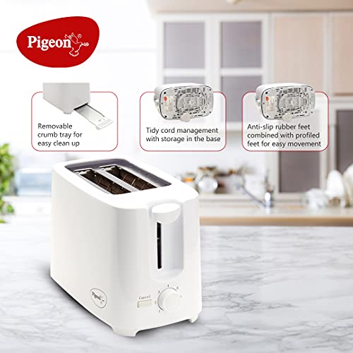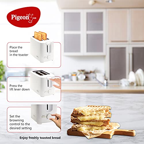 Pigeon 2 Slice Auto Pop up Toaster. A Smart Bread Toaster for Your Home (750 Watt) (White)