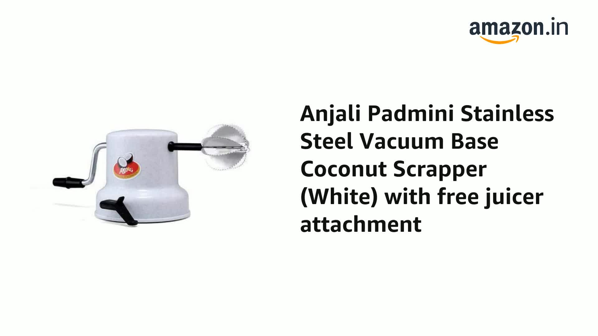 Anjali CO.04 Padmini Stainless Steel Vacuum Base Coconut Scraper (White) with Free Juicer Attachment - Durable and Efficient Kitchen Tool for Scraping Coconut