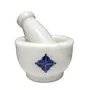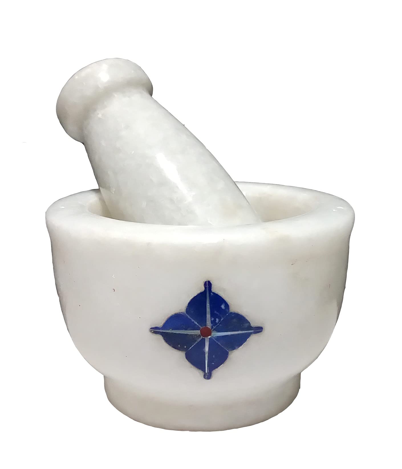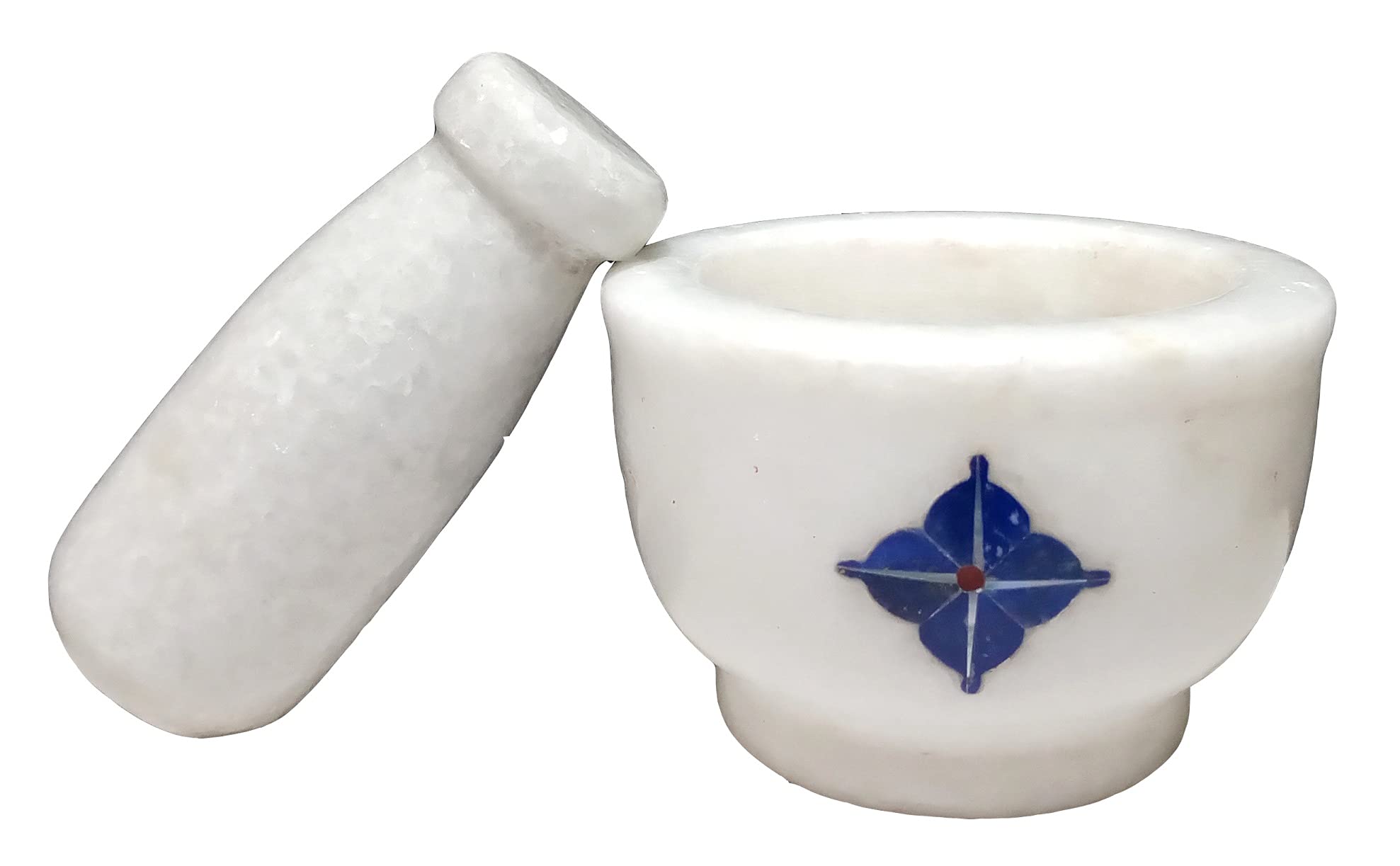 MARBLE INLAY ART AGRA - PACCHIKARI Handcrafted Exclusive Marble Mortar and Pestle Set Kharal Khalbatta Spices Grinder with Inlay Work. (Size 3 x 3 inch)
