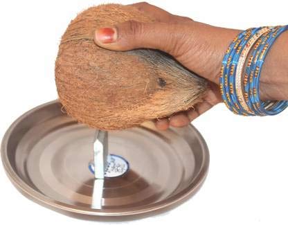 The Coconut Breaker Coconut will break easily on this and water gets collected in the Plate.