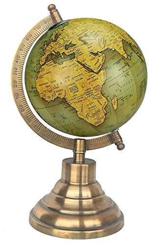 5" Green Gold Educational, Antique Globe with Brass Antique Arc and Base , World Globe , Home Decor , Office Decor , Gift Item By Globes Hub