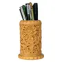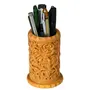 DHOKRA CRAFT Wooden Hand Carved Pen Holder Display Stand (Carved Floral Leaf)