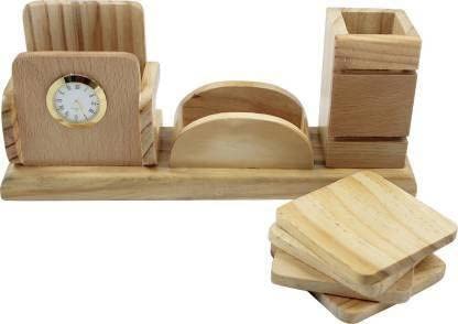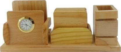 SAHARANPUR HANDICRAFTS 3 Compartments Teak Wood Desk Orgnizer