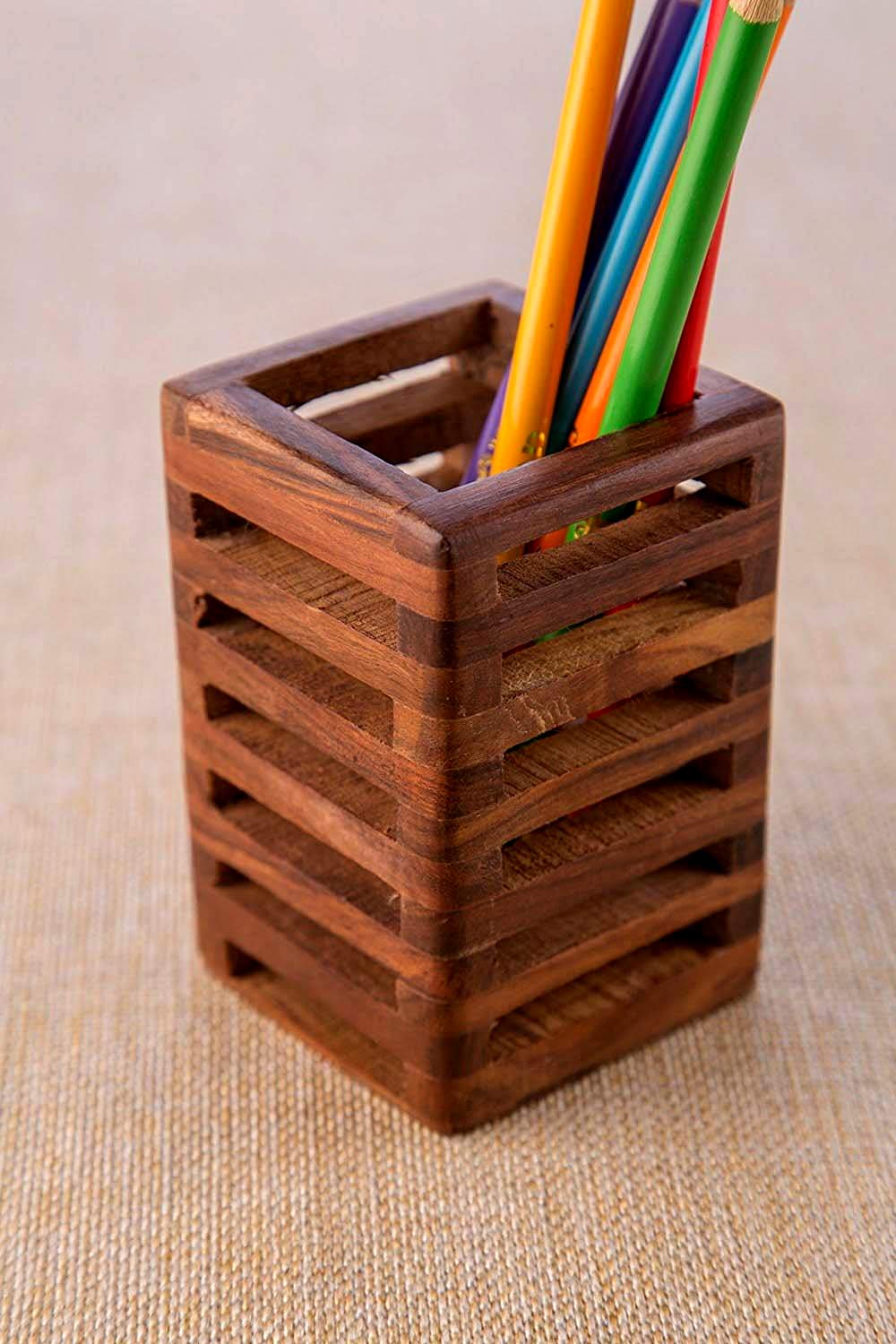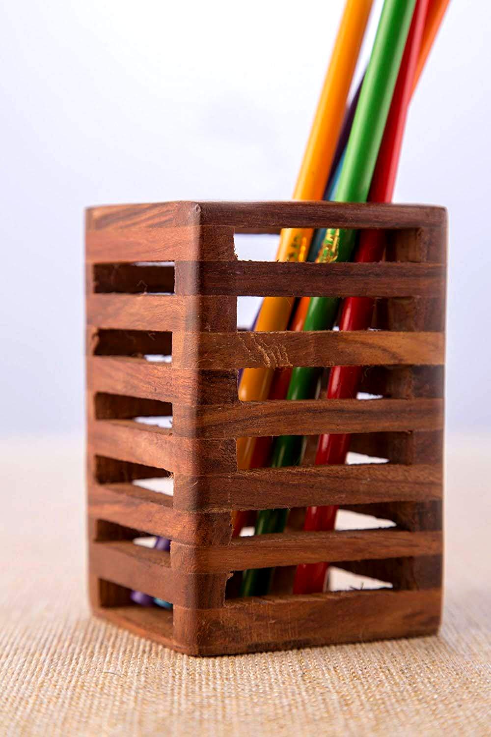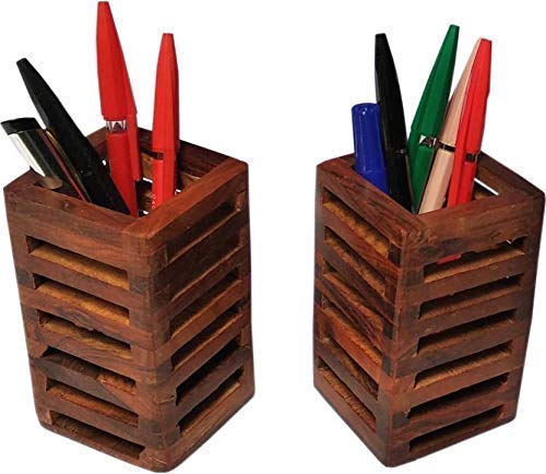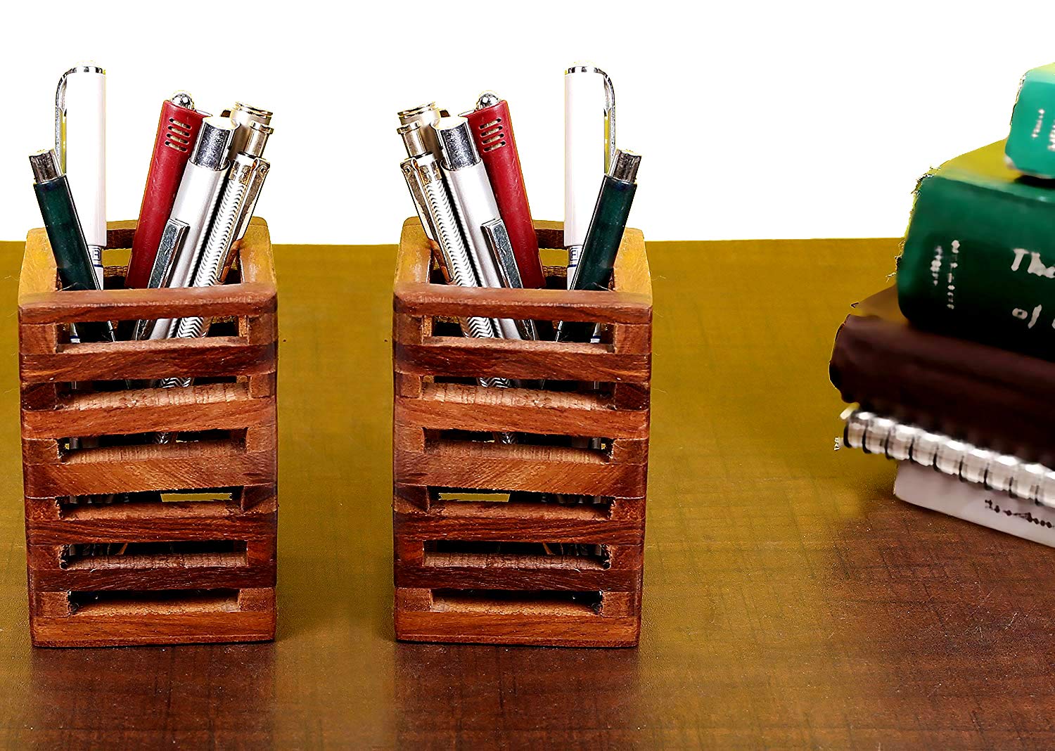 SAHARANPUR HANDICRAFTS Wooden 2 Pen Holder - BrownUnique Design Wooden Pen Stand for Office and Homewooden pen holderwooden pen stand holder Wooden Pen Stand/Pen Holder (Brown