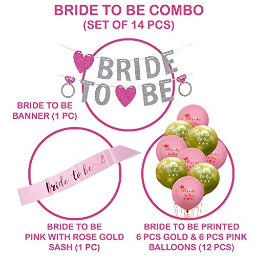 14Pcs Bride to Be Bachelorette Party Decorations Set|Bride to be Banner Sash and Latex Balloons Combo for Bridal Shower Decoration