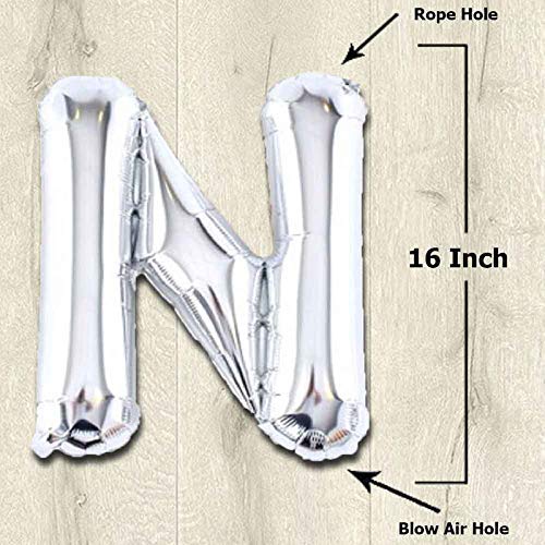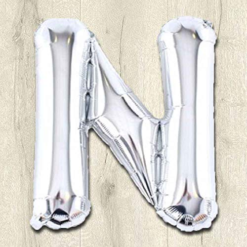 16" Alphabet Letter Shape Golden foil Balloon for KDs Party Decorations (Silver Letter Number 'N')