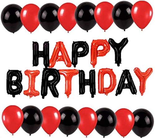 16 Inch Happy Brthday Letters Toy Foil Balloon Set with 30 Balloons (Red and Black HBD Combo)