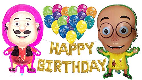 23 Pcs Motu + 2 Pcs Patlu Foil Balloons With 1 Pcs Happy Brthday Banners and 20 Happy Brthday Printed Balloons