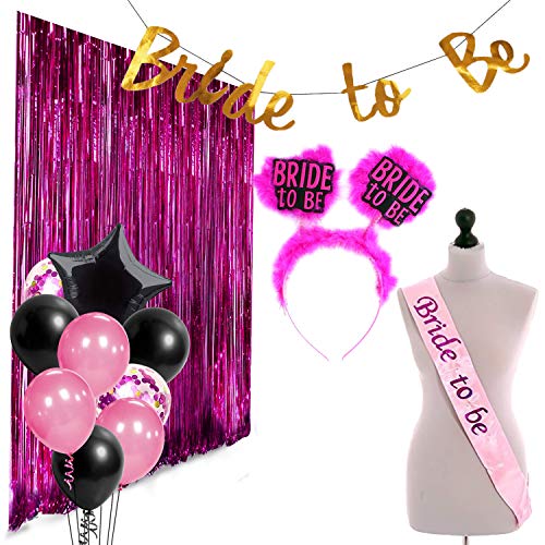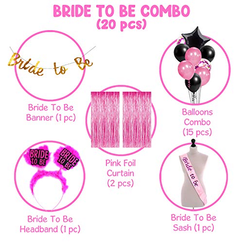 20Pcs Bride to Be Bachelorette Party Decorations Set|Bride to be Banner Sash Foil Curtain Bride to Be Head Band and Balloons Combo for Bridal Shower Decoration