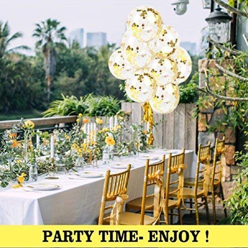 Luxurious colors in 5 each of metallic latex balloons 3 pieces of clear balloons prefilled with gold confetti pieces 1 pieces of bright hert foil balloons