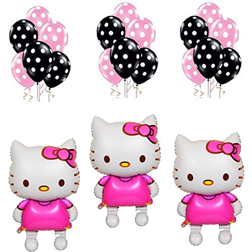 3 Pcs Hello Kitty Foil Balloons with 25 Pink Black Polka Dot For Girls Brthday and Small Shower Hell