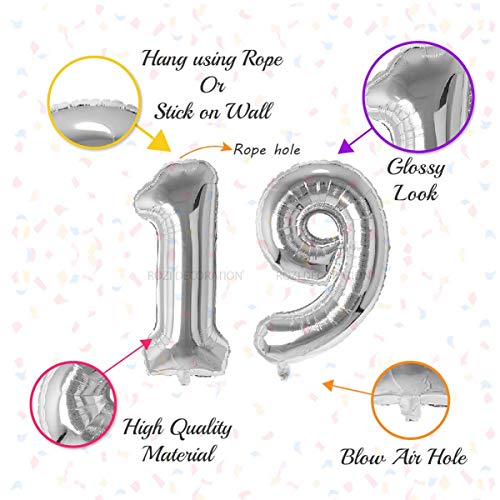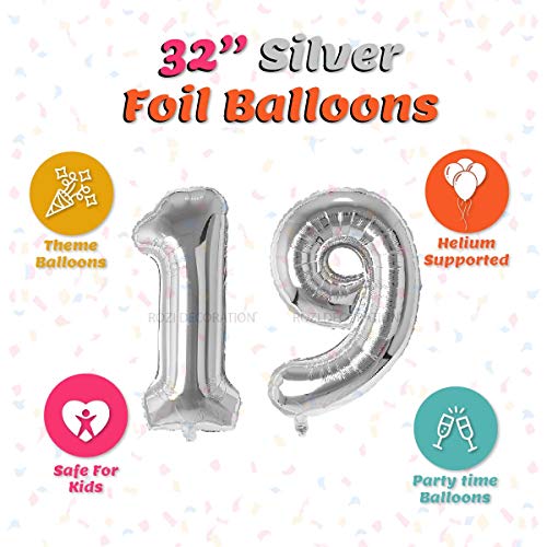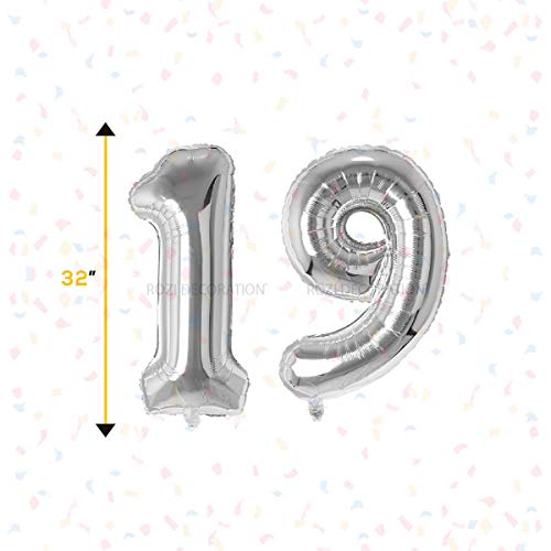 32" Inch Number Foil Balloon Helium Quality -(Pack of 2 Unit) (Silver-19)