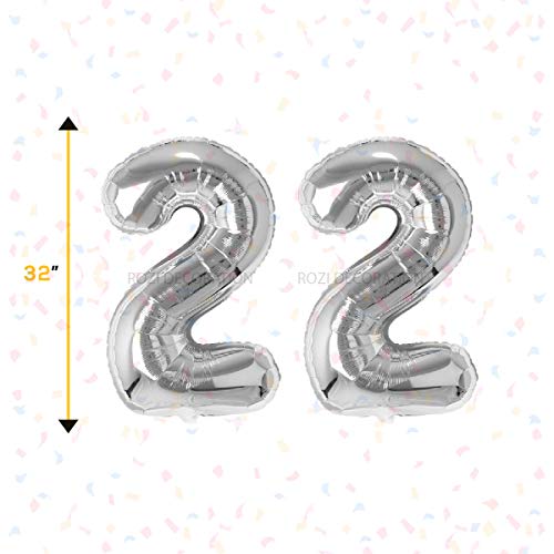 32" Inch Number Foil Balloon Helium Quality -(Pack of 2 Unit) (Silver-22)