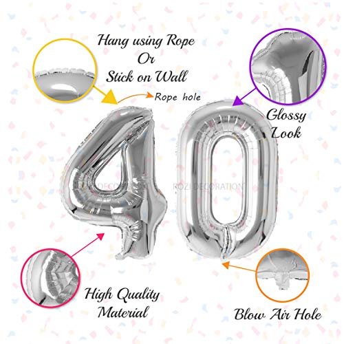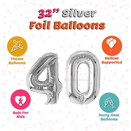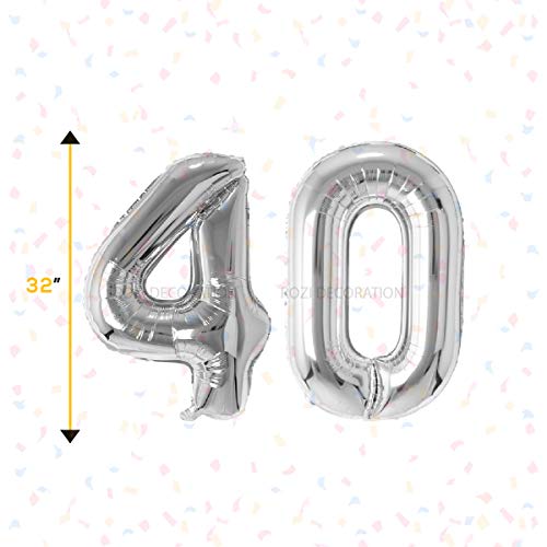 32" Inch Number Foil Balloon Helium Quality -(Pack of 2 Unit) (Silver-40)