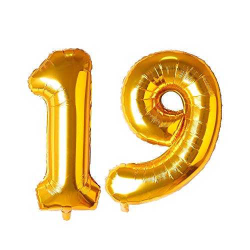 32" Inch Number Foil Balloon Helium Quality -(Pack of Two Unit) (Gold-19)