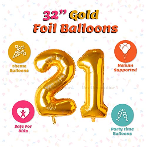 32" Inch Number Foil Balloon Helium Quality -(Pack of Two Unit) (Gold-21)