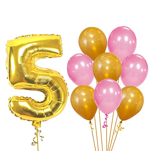5th Brthday Small Girl Decoration Combo Number 1 Foil Balloon and Gold Pink Metallic Balloons Set 9Pcs for KDs Boy Party Supplies