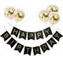 Balloons(5 Pcs) with Golden Colored Pre-Filled Confetti and Black Colored Happy Brthday Banner Combo- CB10B-B