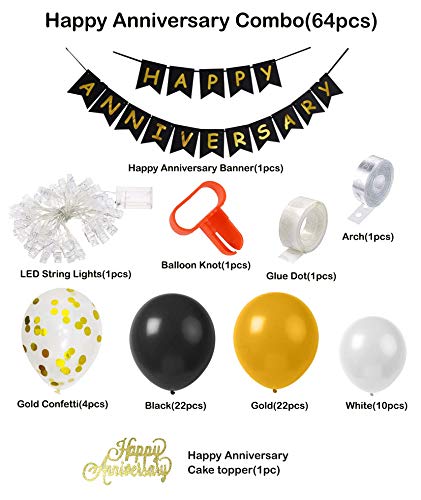 Happy Anniversary Decoration Items with LED Photo Banner Balloons Cake Topper Glue Dot 73Pcs Set for