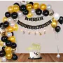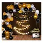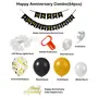 This special anniversary set Packet includes: 1pc black happy anniversary banner 4pcs golden confetti 2pcs black balloons 2pcs golden metallic 20pcs golden metallic 20pcs black balloons 10pcs white metallic 10pcs LED string light photo banner 1pc happy an