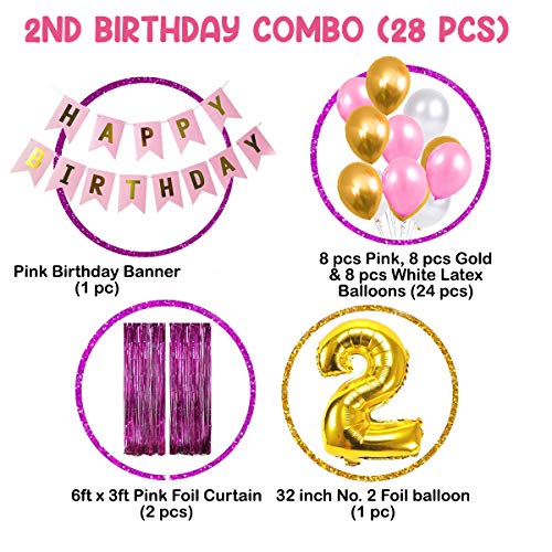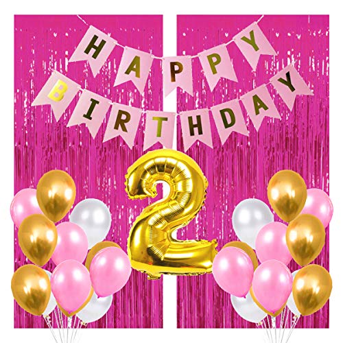 HAPPY BrthDAY COMBO INCLUDES 1 GOLDEN FOIL BALLOON OF 2 1 HAPPY BrthDAY BANNER 2 PCS PINK FOIL CURTA