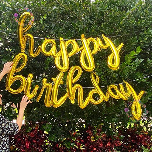 Happy Brthday Cursive Gold Letter Foil Balloon Party Decoration (Gold)