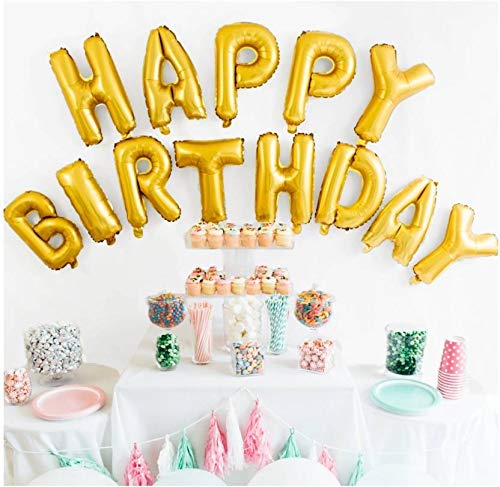 Package Contains Gold Color 16 Inches Happy Brthday Alphabet Balloons 16 Inches Number Balloon Ribbon To Attach The Alphabets And Straw To Blow The Foil Balloon