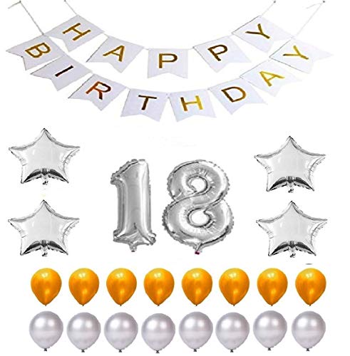 Package Contains : ( Silver 18 Numerical Number 4 Foil Balloon Stars 25 Gold Latex and 25 Silver Latex Balloon)