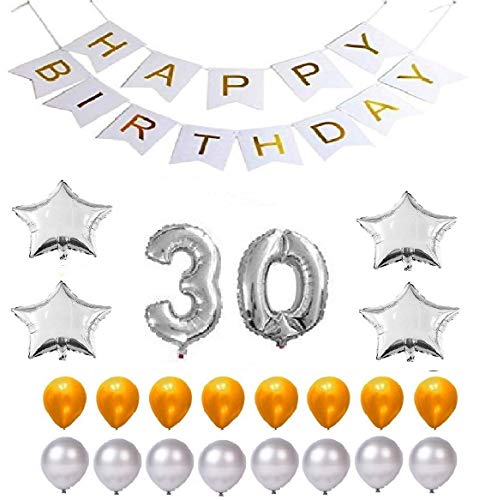Package Contains : ( Silver 30 Numerical Number 4 Foil Balloon Stars 25 Gold Latex and 25 Silver Latex Balloon)