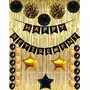 Pack Includes: happy retirement banner gold foil fringe curtain x 1 paper pom poms x 5 gold and black latex balloons x 22 star foil balloons x 3 total 32pcs