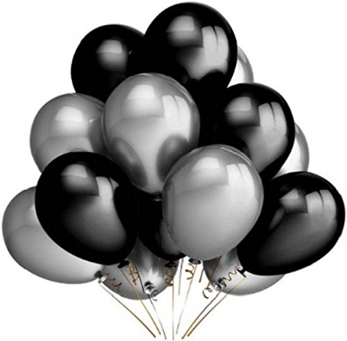 50 pieces of 9 inch solid metallic Silver Black balloons. The charming balloons are made of natural rubber latex and support helium and air excluded .