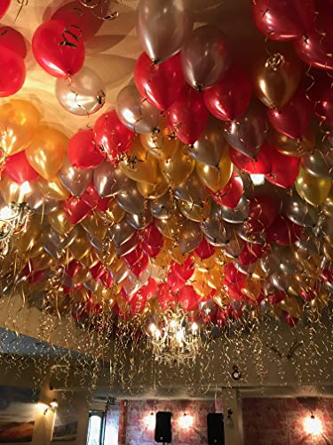 Number 34 Gold Foil Balloon and 50 Nos Red and Gold Metallic Shiny Latex Balloon Combo