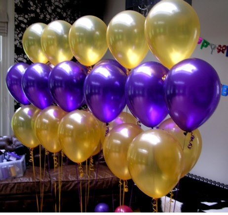 Number 67 Gold Foil Balloon and 50 Nos Purple and Gold Color Latex Balloon and Happy Brthday Gold Foil Balloon Combo