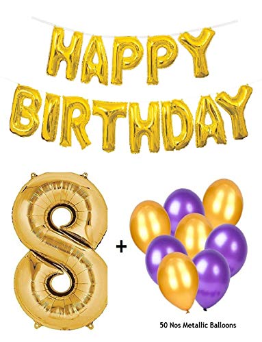 Number 8 Gold Foil Balloon & Happy Brthday Banner