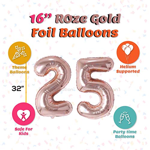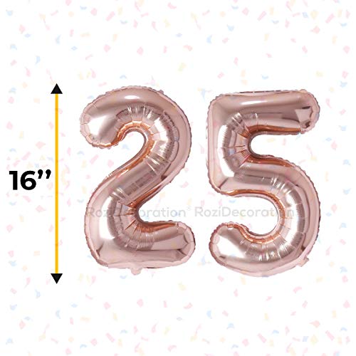 Numbers Foil Balloon 16" Inch -(Pack of Two Unit) Rose Gold (Rose Gold-25)