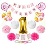 5) Pink Gold and White Metallic Balloons - 100 Pcs. 6) I am 1 Today Banner (Pink) - 1 Pc.