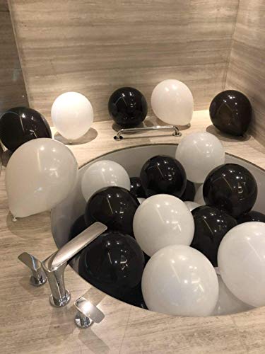 Party Balloons Helium Balloons Pure Black/White Color Latex Balloons for Brthday Wedding Anniversary Festival Home Decoration with 2 ribboons (1 Black1 White) (Pack of 60)
