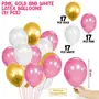Pink Golden and white Metallic balloon Package Includes: 51Pcs Pink golden and white metallic Balloons 10" in size.These metallic latex ballons is perfect for girls any age Brthday decor like 1st/ first 2nd/ second 3rd/ third 4th/ fourth five/5th birhday