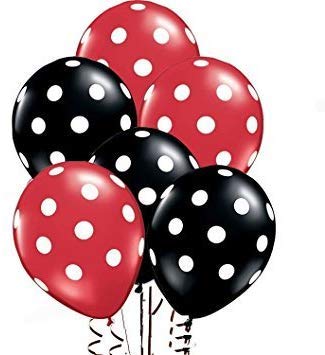 Beautiful premium polka dot black red balloons pack of 30 in assorted colors.