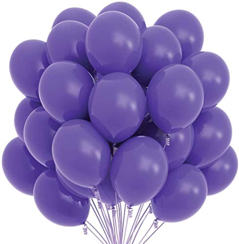 Purple Party Balloons Balloons with 2 Matching Color Ribbon for Purple Theme Party Decoration Helium Quality (PURPLE PACK OF 100)