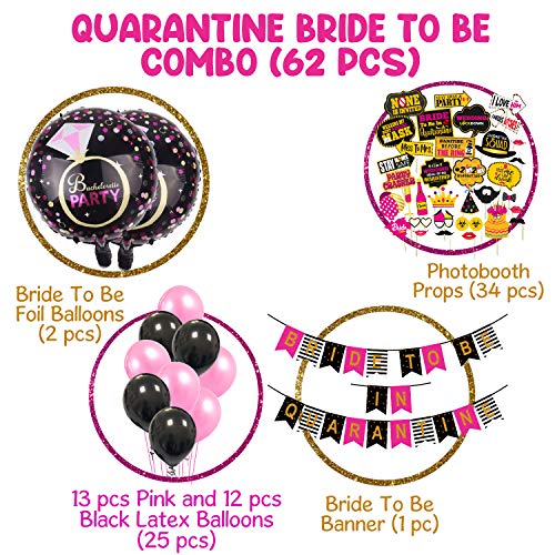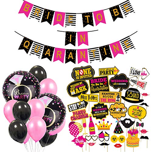 Quarantine Bride to Be Banner Balloons with Photo Booth Props - (No Glitter) Large and Durable and S