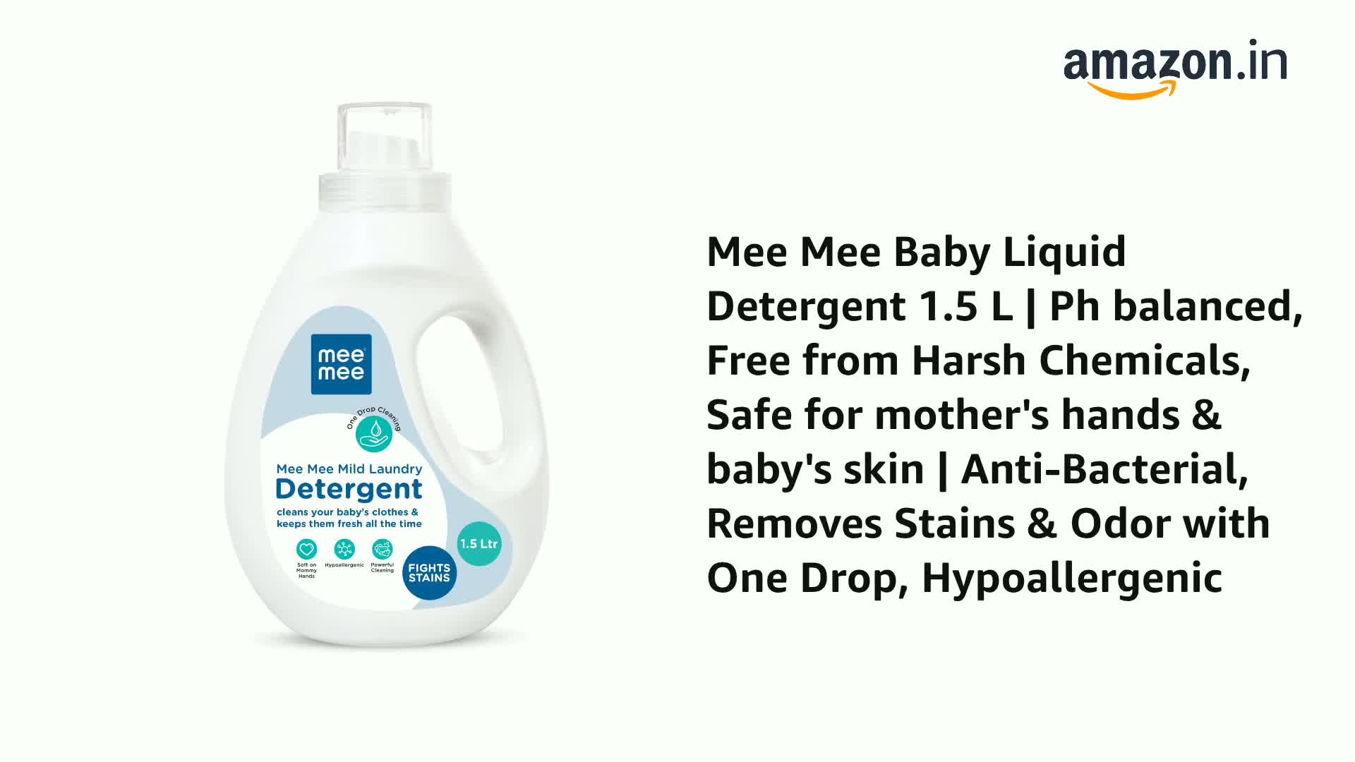 Safe and Effective Baby Detergent Liquid: Mee Mee's baby laundry detergent liquid is dermatologically tested hypoallergenic and free from harsh chemicals making it ideal for delicate fabrics and baby's skin.