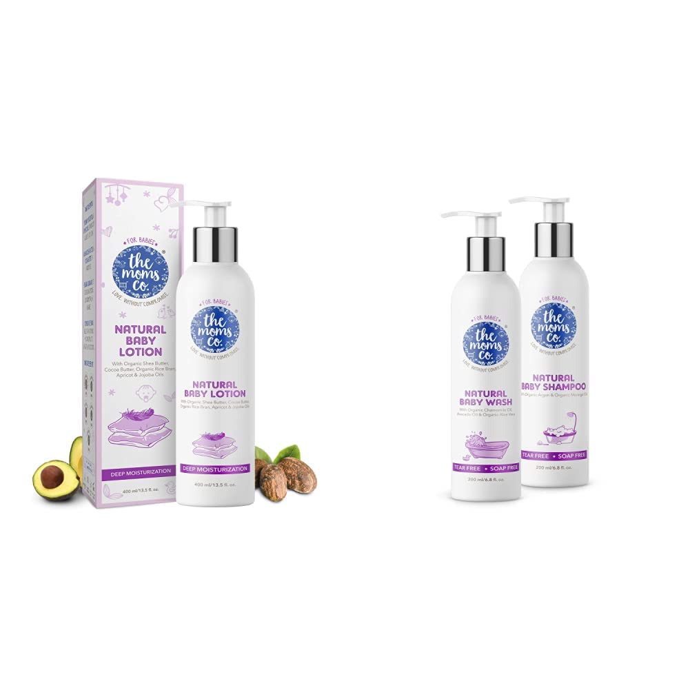 HomeBabyBath & SkinBaby BathingBody WashThe Moms Co Natural Baby Lotion (400 Ml) And The Moms Co. All Natural Tear-Free Cleaning Bundle For Baby With Tear-Free Natural Baby Wash (200Ml)