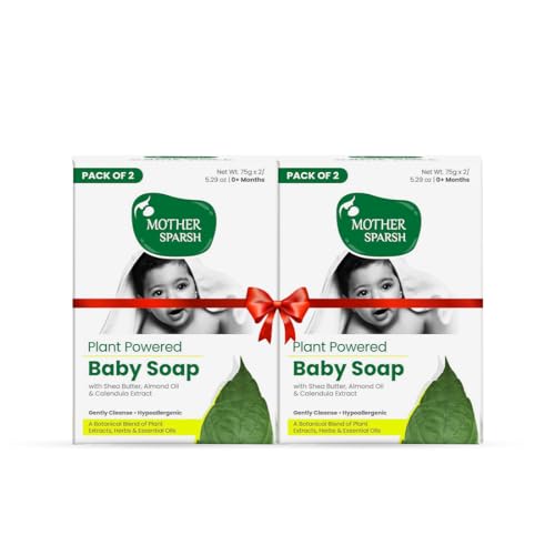 Mother Sparsh Plant Powered Natural Baby Soap - Pack of 4X75gms | Hypoallergenic & Tear-Free Soap for Babies, Newborns