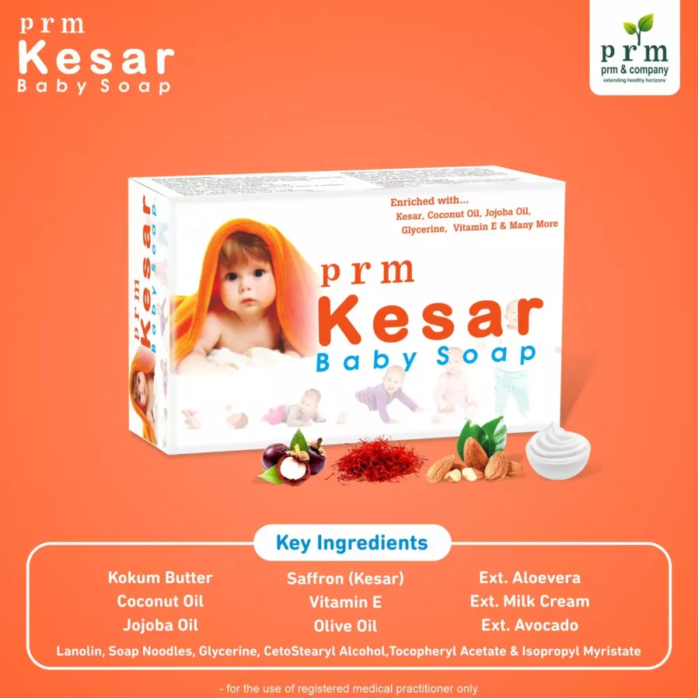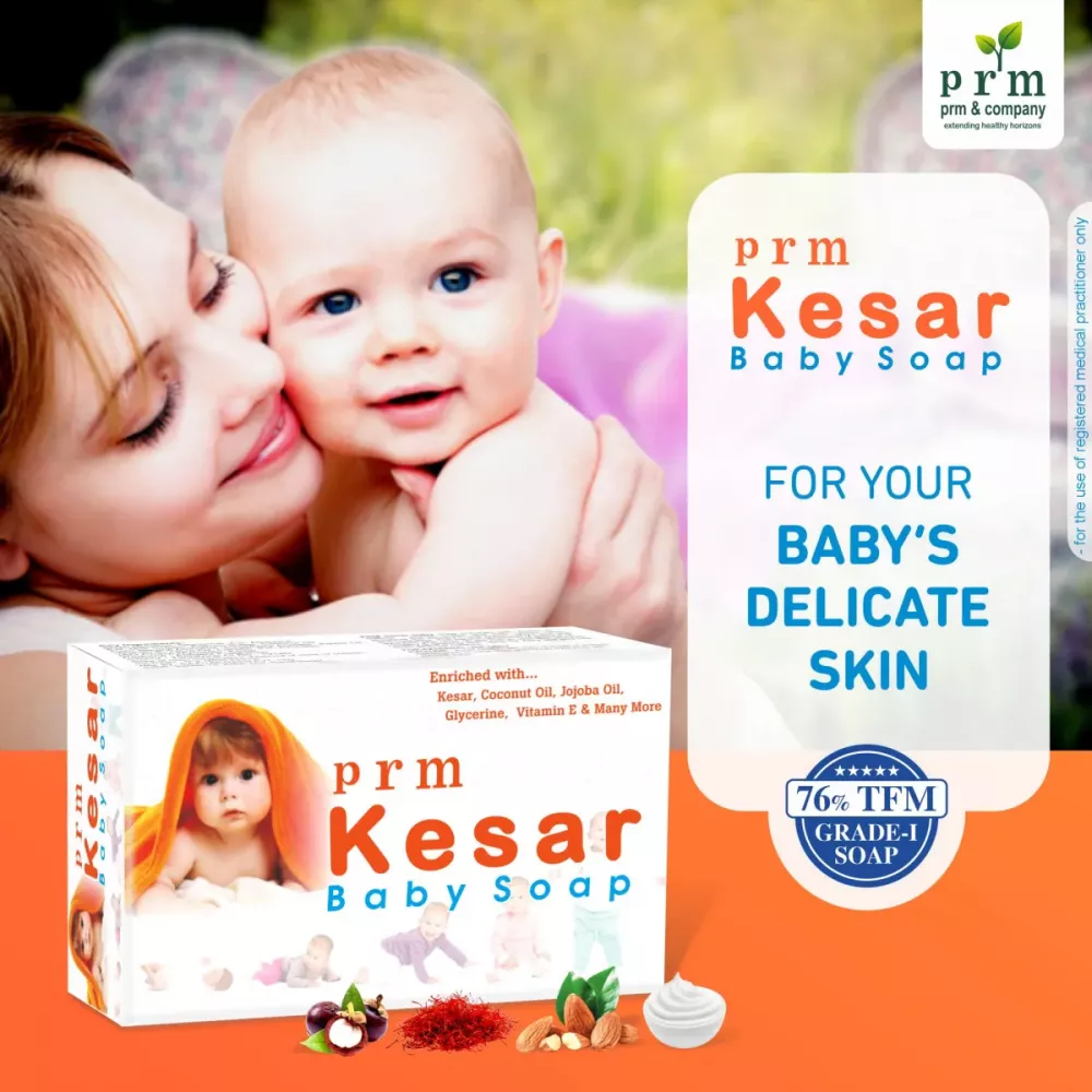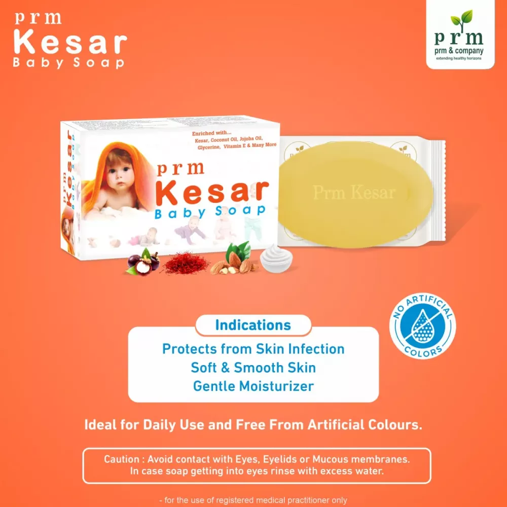 PRM Kesar Baby Soap 75g (Pack of 2) Gentle Daily Bathing Soap For Infants With Kesar, Coconut Oil & Jojoba Oil