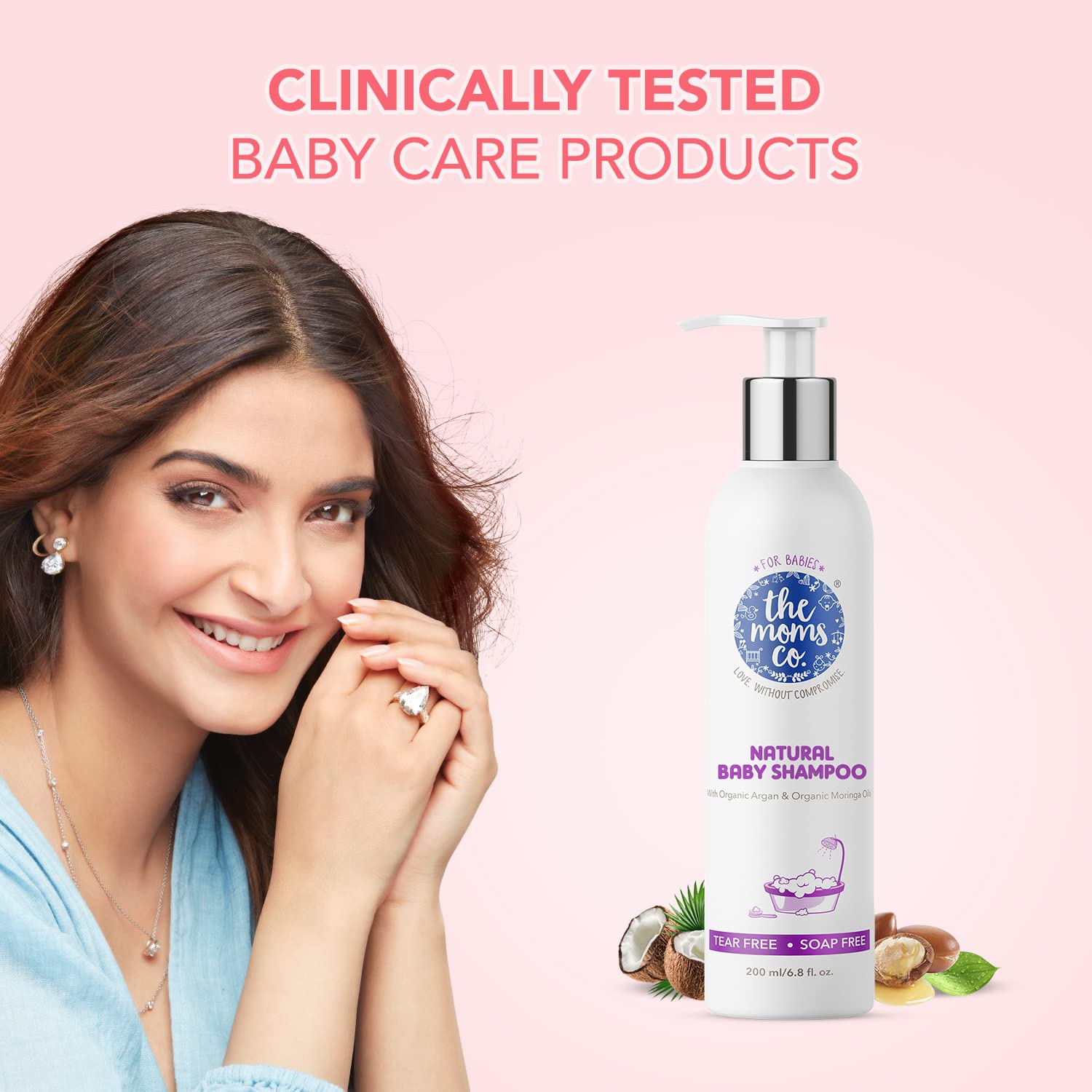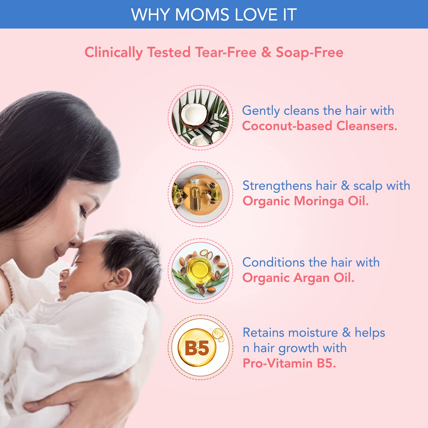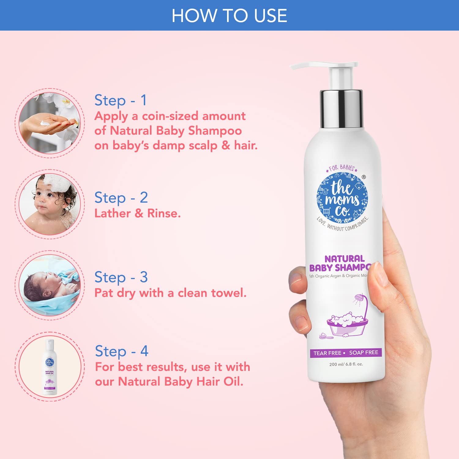 The Moms Co. Tear-Free Natural Baby Shampoo| Australia-Certified Toxin-Free | Cleans & Conditions Hair | With Organic Argan Oil Moringa Oil & Coconut-based Cleansers- 200 ml
