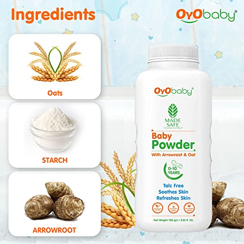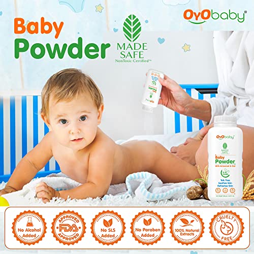 OYO BABY:- Talc Free baby powder for newborns absorbs excess moisture and keeps baby's skin comfortable and dry.