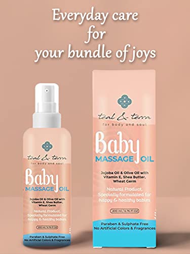 Teal & Terra baby Massage oil with Natural ingredients jojoba oil & Olive Oil Vitamin E Shea Butter & Wheat Germ Clinically Tested for Safety. Hypoallergenic Mild & Gentle- 200 Ml