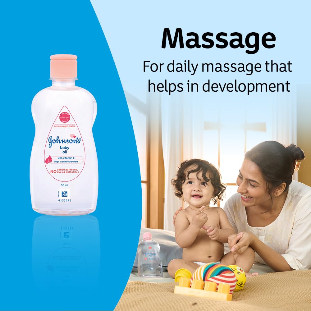 Massage with Johnson's baby oil-For daily massage that helps in development Cleanse with Johnson's baby soap Johnson's baby top-to-toe bath Johnson's baby shampoo and Johnson's baby skincare wipes: Gentle cleansers that helps protect from germs and drynes